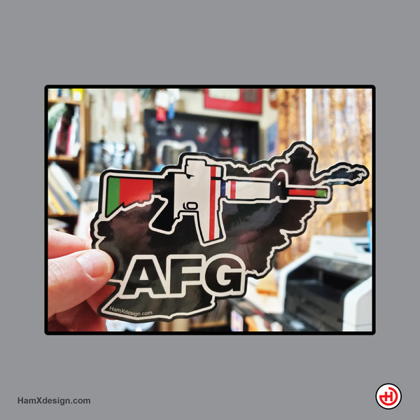 AFG Sticker (6.13" x 3.25") — clean, bold, and built for the long haul. This wide-format design hits hard with a simple, tough look that nods to Afghanistan service without overdoing it. Printed on durable, weatherproof vinyl with a crisp finish, it’s perfect for your truck, toolbox, water bottle, laptop, or gear case. Strong adhesive, sharp detail, and made to hold up through sun, rain, and everyday abuse—because some letters carry a whole story.