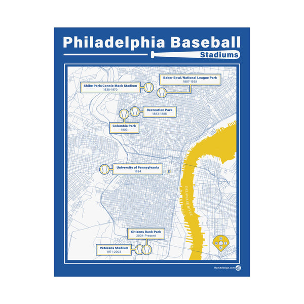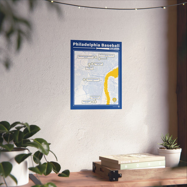 Trace the evolution of Philadelphia’s ballparks across one striking vertical poster. Each stadium location is plotted with clear, archival-quality lines and vibrant Giclée color that holds up to sunlight — a quiet, museum-ready piece that belongs on the wall of anyone who lives and breathes Philly baseball. The matte surface softens glare so neighborhood bar lighting or a study’s lamp won’t wash out the details. Hang it in a den, office, or game-room to anchor conversations about old rivalries, ballpark lore, and the neighborhoods that shaped the sport. The map-like layout invites long looks: you’ll find yourself tracing routes between eras, remembering summer nights at different fields and feeling the city’s baseball history all at once.