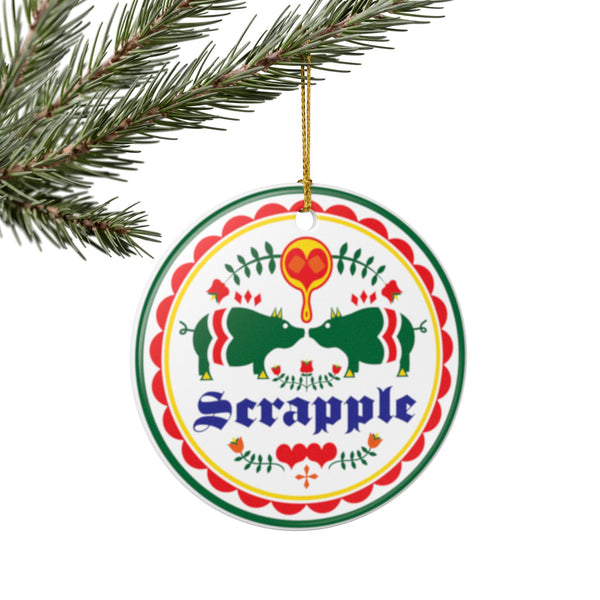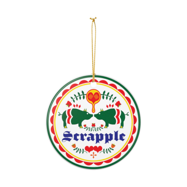 This Ceramic Ornaments features a Scrapple Hex Sign design, giving off a rustic and traditional vibe. Perfect for those who love folklore and cultural decor. Ideal for Christmas, Thanksgiving, or home decorations.