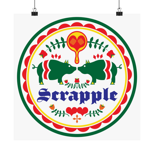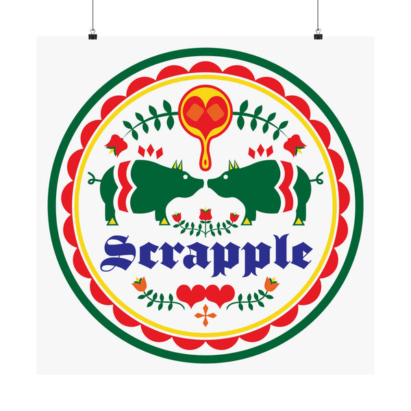 This Satin Poster featuring a Scrapple Hex Sign design is perfect for adding a touch of folk art to your home decor. The vibrant colors and low-glare finish make it a standout piece that can be easily hung on your wall. Suitable for those who appreciate traditional Pennsylvania Dutch art and want to celebrate heritage holidays or decorate their homes with unique designs.