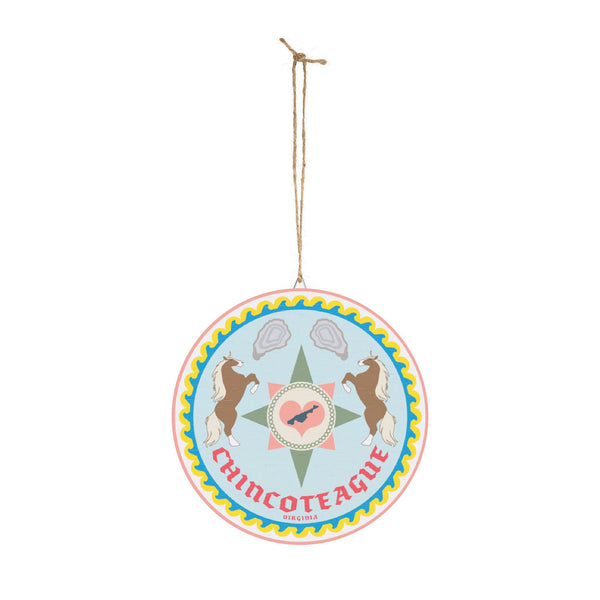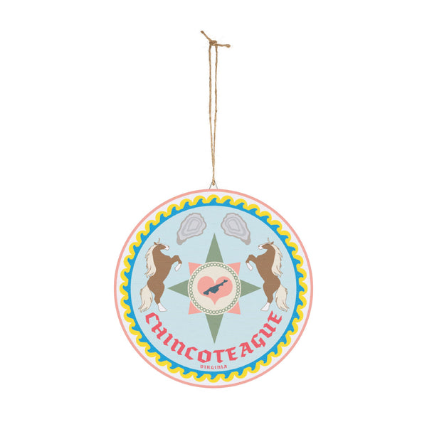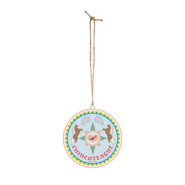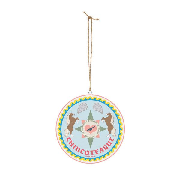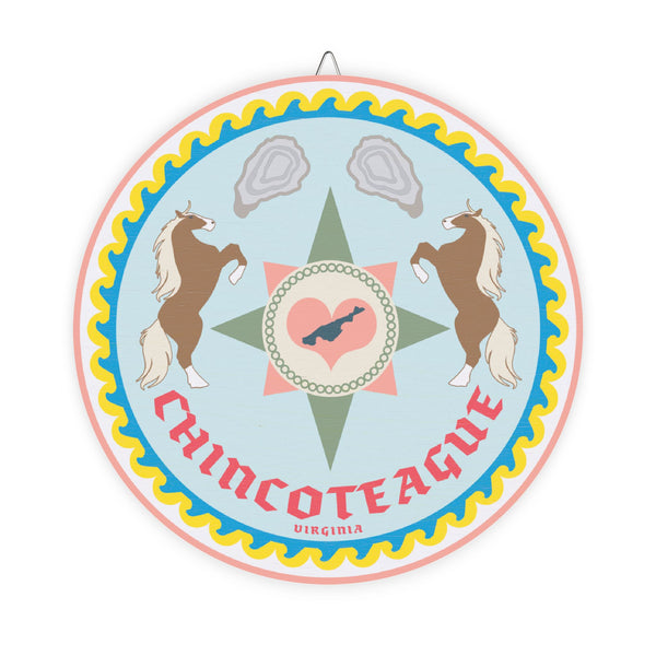 This Chincoteague, Virginia themed Wood Signs features a Hex Sign with ponies and oysters on it, giving off a rustic and coastal vibe. Perfect for those who love beach decor and nature-inspired motifs. Ideal for decorating homes, beach houses, or coastal-themed rooms. Relevant for coastal and beach lovers, as well as those celebrating beach vacations, coastal living, or horse-related events.