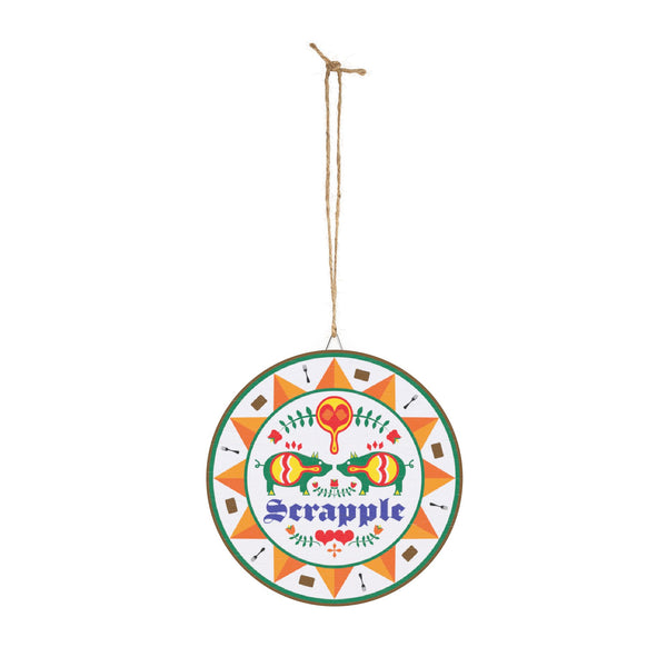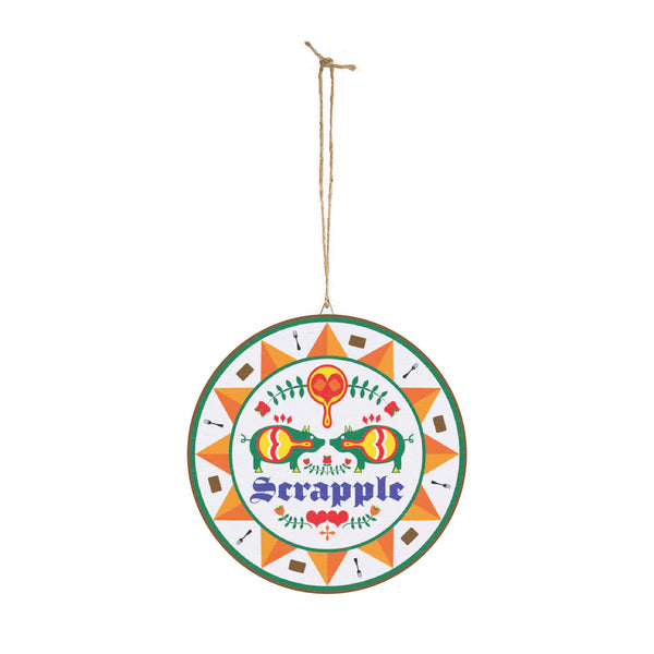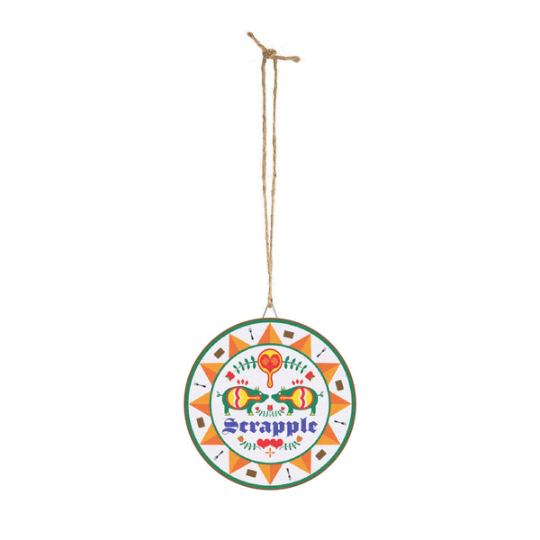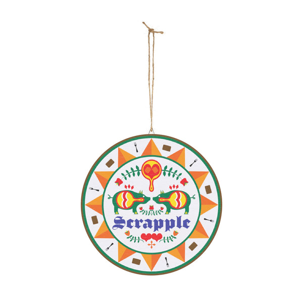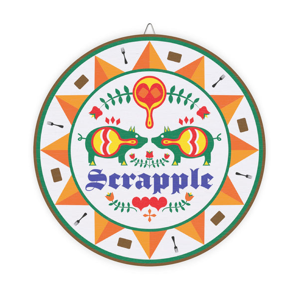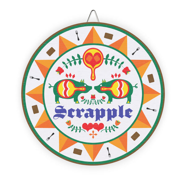 This Scrapple Hex sign wood sign brings a touch of rustic charm to your home decor. Perfect for those who love traditional Pennsylvania Dutch designs and want to add a unique element to their space. Ideal for fans of Americana decor, those celebrating Pennsylvania Dutch culture, and anyone looking to add a pop of color and history to their home. Great for decorating during holidays like Thanksgiving, Christmas, and Fourth of July.