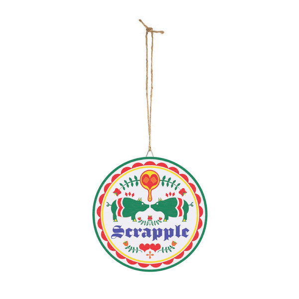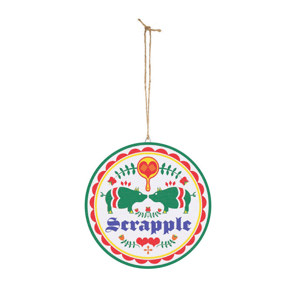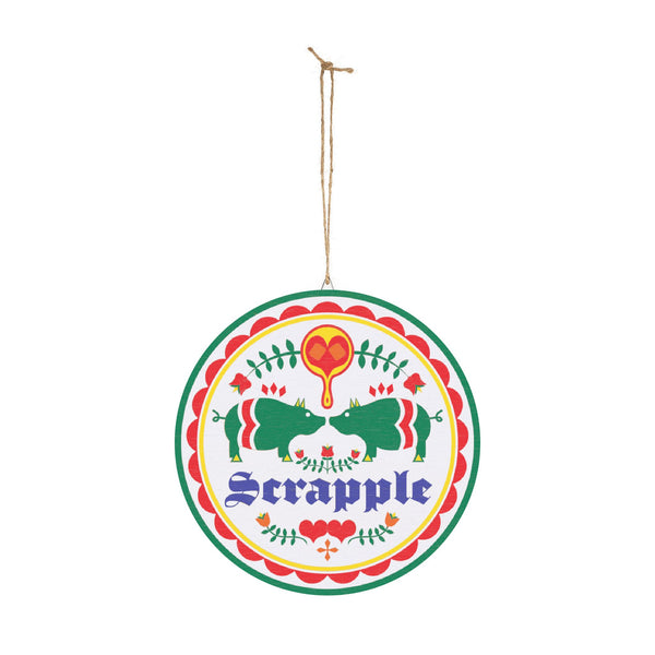 This Scrapple Hex Sign wood sign exudes a rustic and charming vibe, perfect for adding a touch of folk art to your home decor. It is ideal for those who appreciate traditional Pennsylvania Dutch designs and want to infuse their living space with a bit of history. This wood sign is relevant for celebrating cultural heritage, adding warmth to your home, and creating a cozy atmosphere.